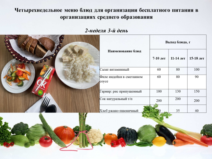 13- қыркүйекке арналған ас мәзірі/Контрольное блюдо на 13 сентября