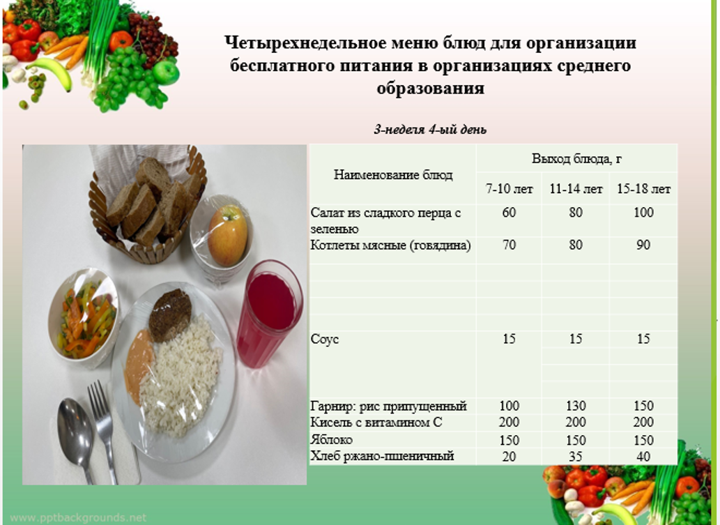 21- қыркүйекке арналған ас мәзірі/Контрольное блюдо на 21 сентября