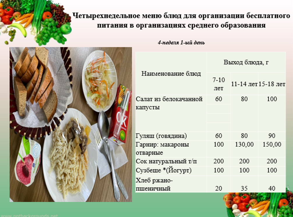 25- қыркүйекке арналған ас мәзірі/Контрольное блюдо на 25 сентября
