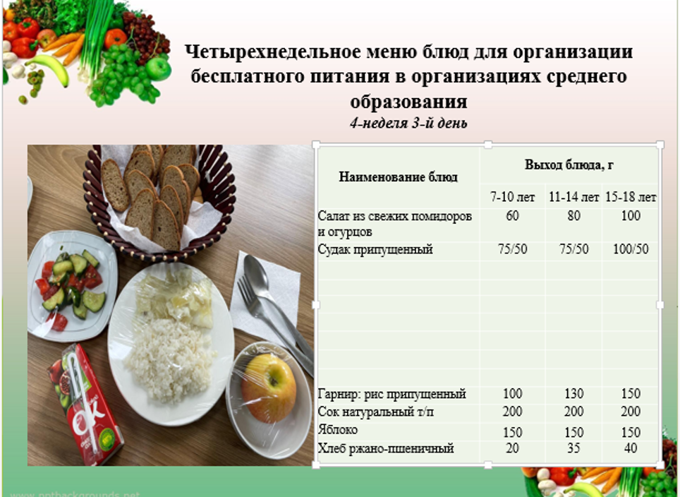 28- қыркүйекке арналған ас мәзірі/Контрольное блюдо на 28 сентября