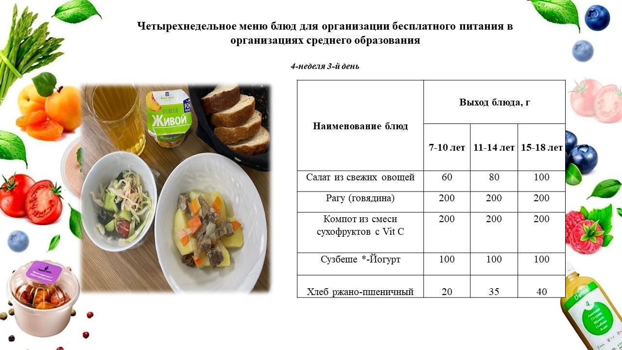 14 қараша арналған ас мәзірі /Контрольное блюдо на 14 ноября