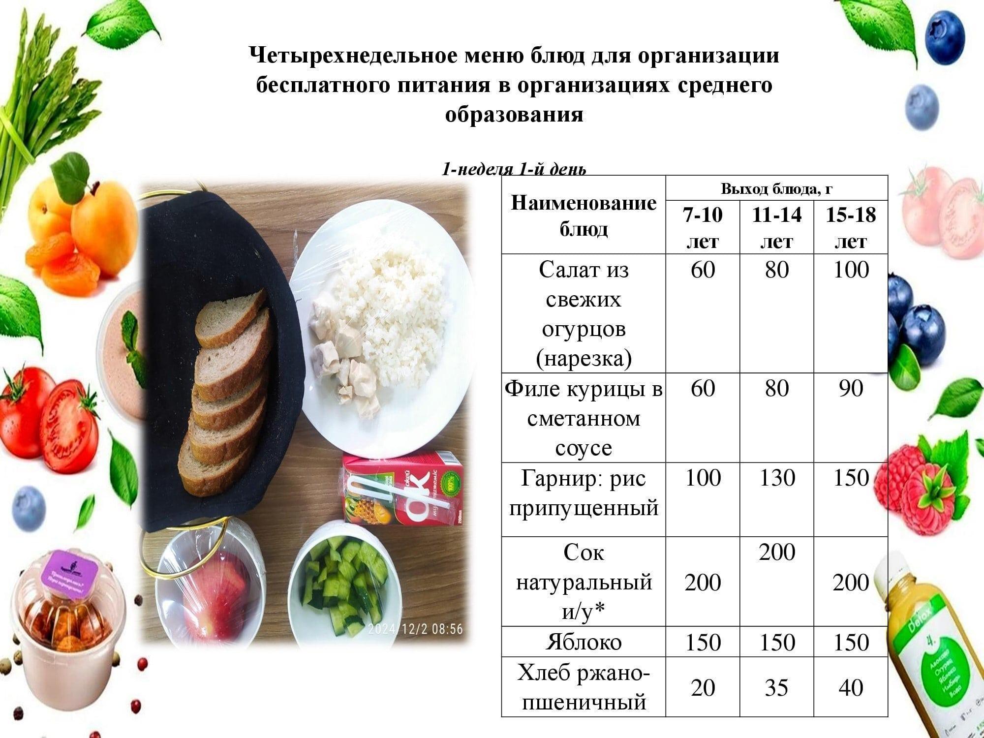 2 желтоқсан арналған ас мәзірі /Контрольное блюдо на 2 декабря
