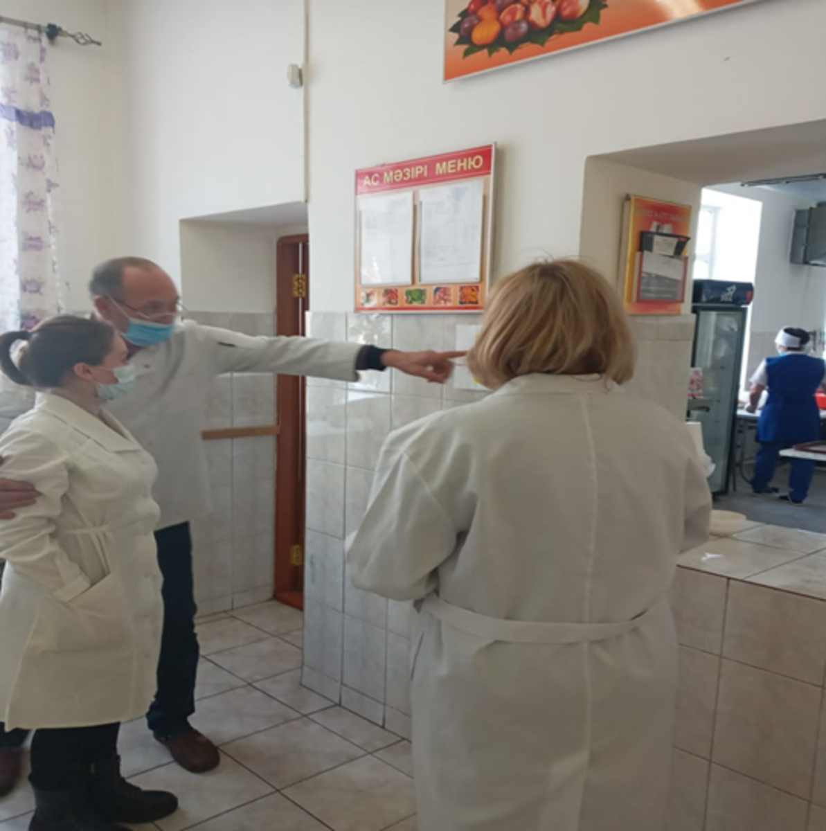 С учетом возраста обучающихся в меню соблюдены требования санитарных правил по массе порций блюд, их пищевой и энергетической ценности, суточной потребности в основных витаминах и микроэлементах. Питание обучающихся соответствует принципам щадящего питания, предусматривающее использование определенных способов приготовления блюд, таких как варка, приготовление на пару, тушение, запекание, и исключены продукты с раздражающими свойствами. Ежедневно в обеденном зале вывешивают, утвержденное руководителем образовательного учреждения, меню, в котором указываются сведения об объемах блюд и названия кулинарных изделий. Все приобретаемые продукты имеют сертификат соответствия. Доставка пищевых продуктов осуществляется специализированным транспортом. Не допускается присутствие обучающихся в производственных помещениях столовой. К работе допущены лица, имеющие соответствующую профессиональную квалификацию, прошедшие предварительный, при поступлении на работу, и периодические медицинские осмотры в установленном порядке. Запрещенные продукты в питании детей не употребляются. Ежедневно ведется бракеражный журнал медицинским работником Мусакуловой А.А.