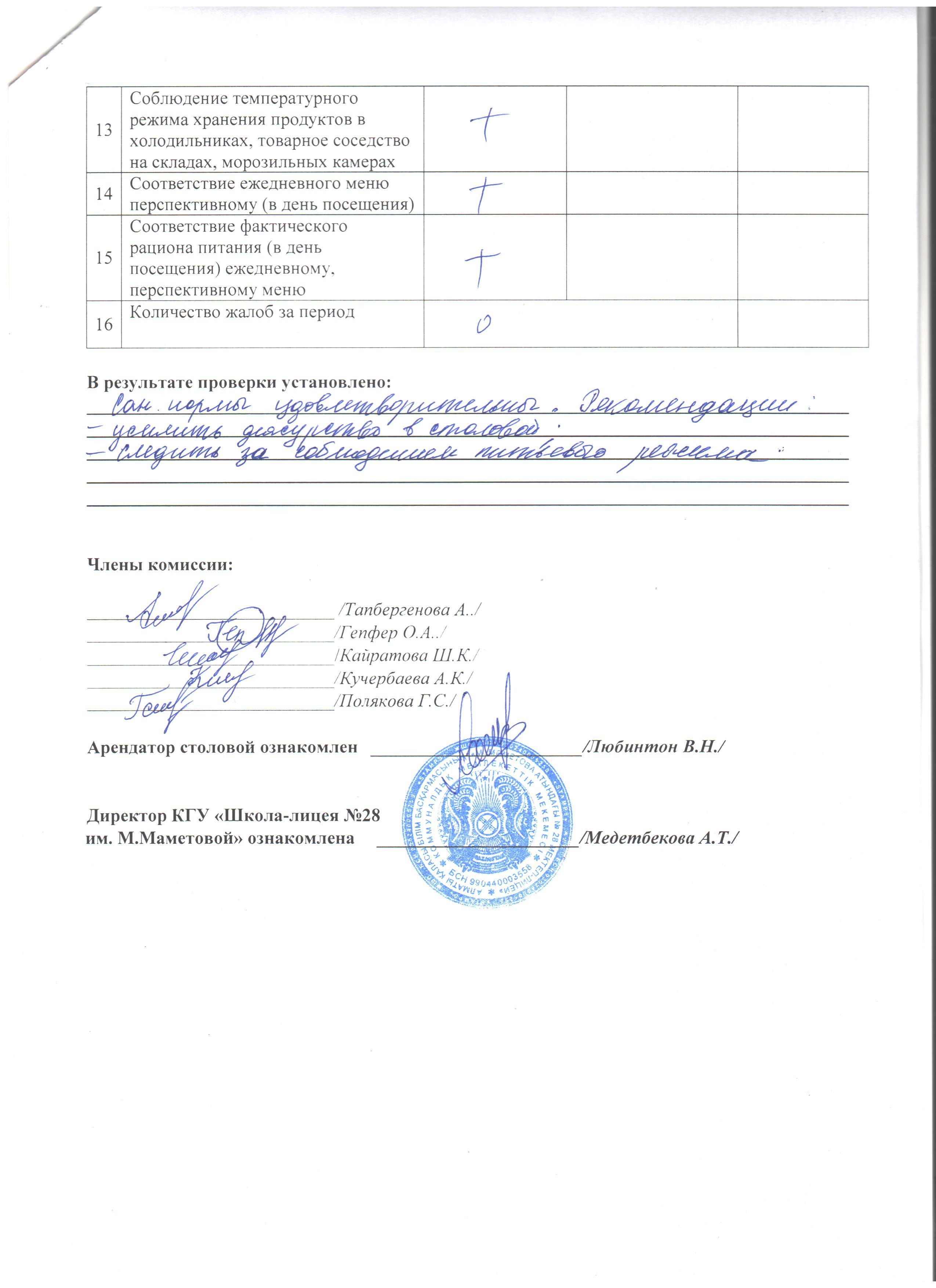 Асхананың қызметі/ Работа столовой