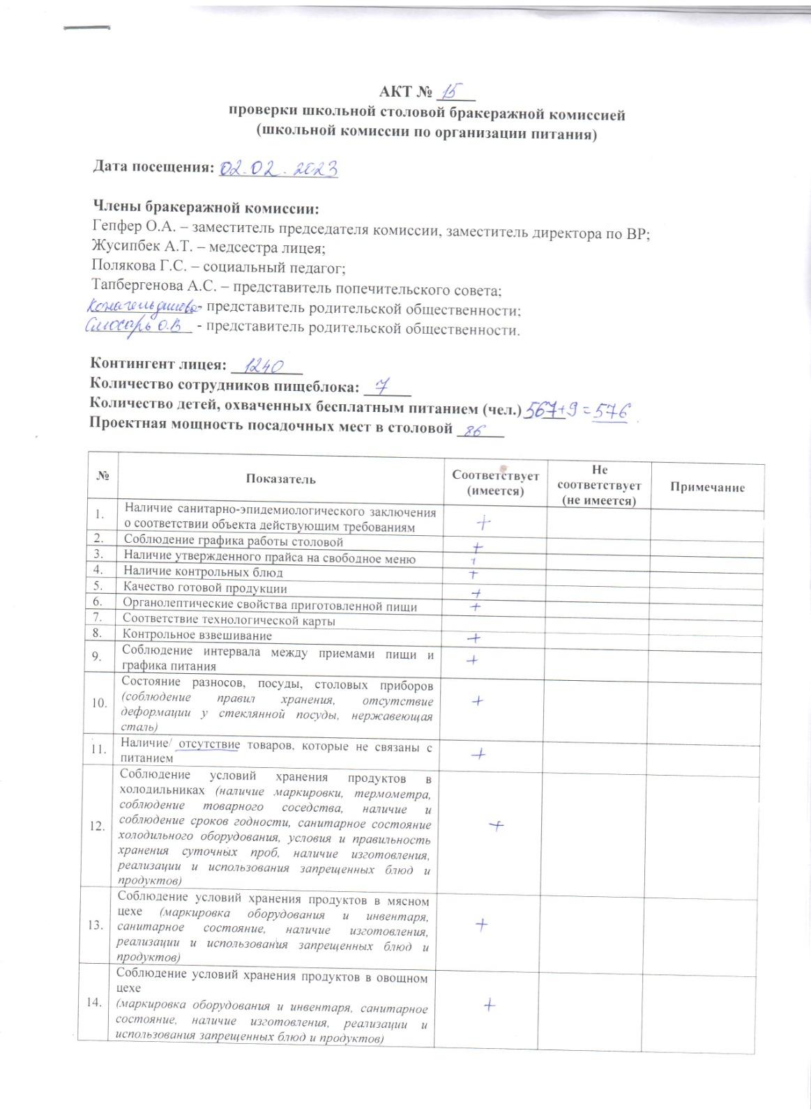 АКТ №15 от 20.01.2023