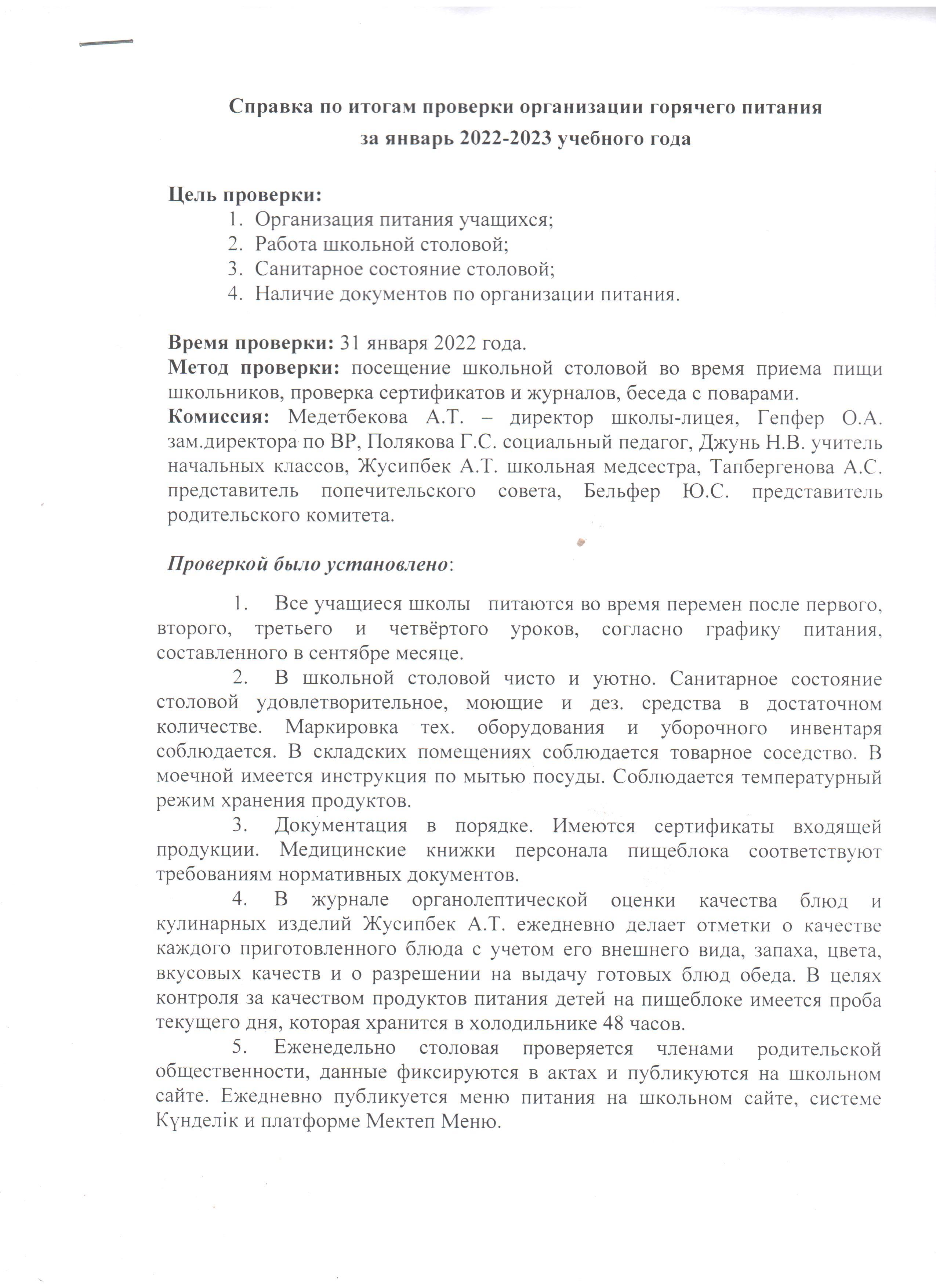 31 қаңтар 2023 0 1 2 3 4 5 Қаңтар айындағы ыстық тамақтандыру бойынша анықтама/ Справка по организации горячего питания за январь