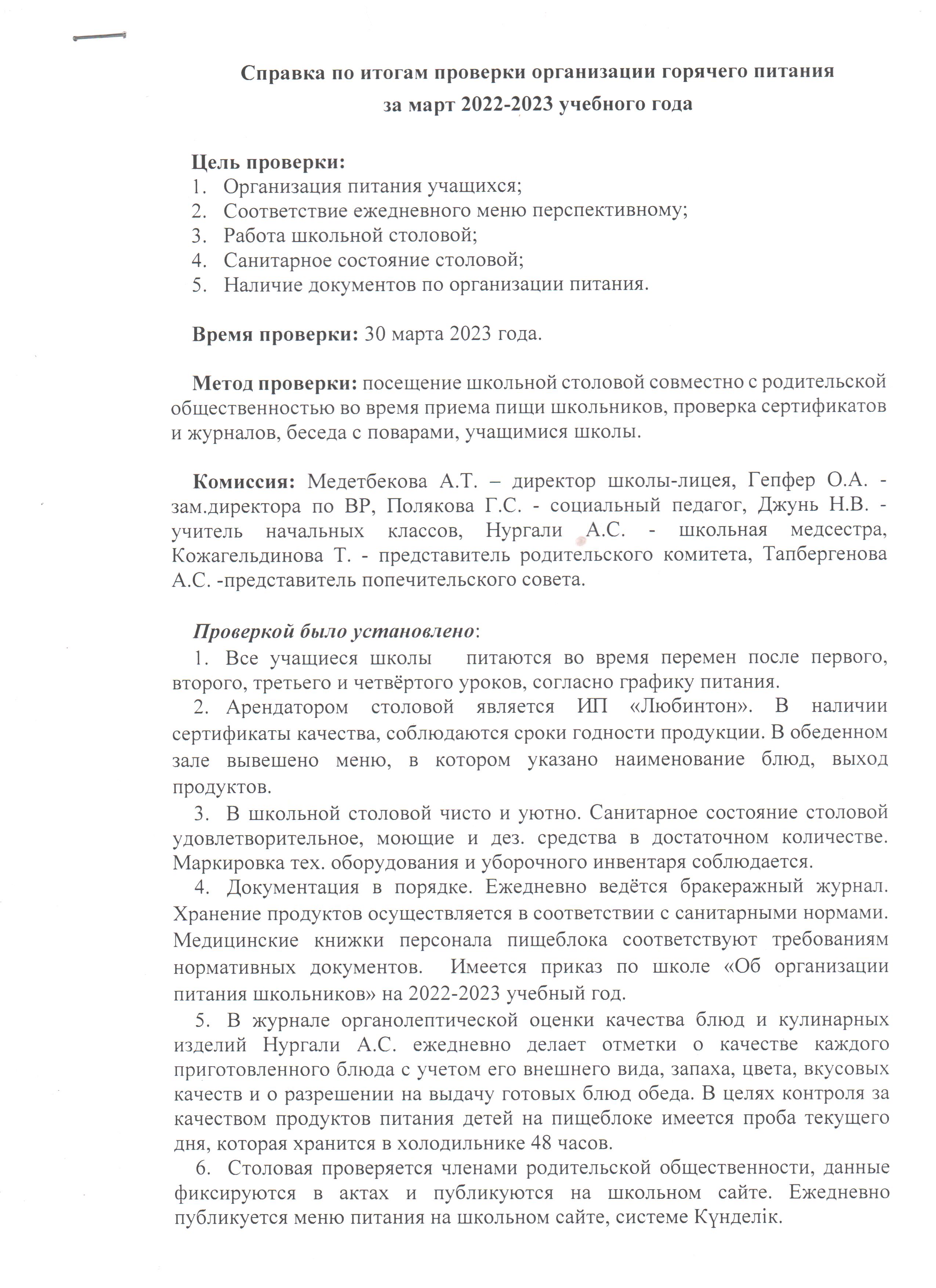 30 наурыз 2023 0 1 2 3 4 5 Наурыз айындағы ыстық тамақтандыру бойынша анықтама/ Справка по организации горячего питания за март