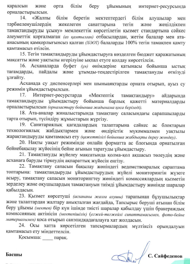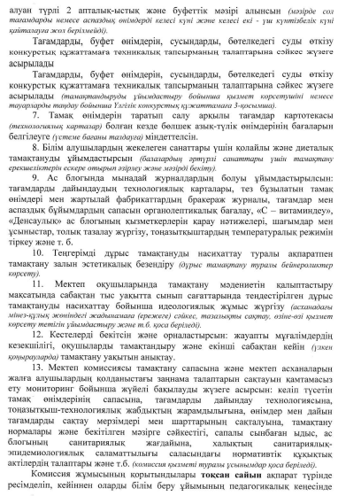 Тамақтандыруды ұйымдастыру жұмыс жоспары