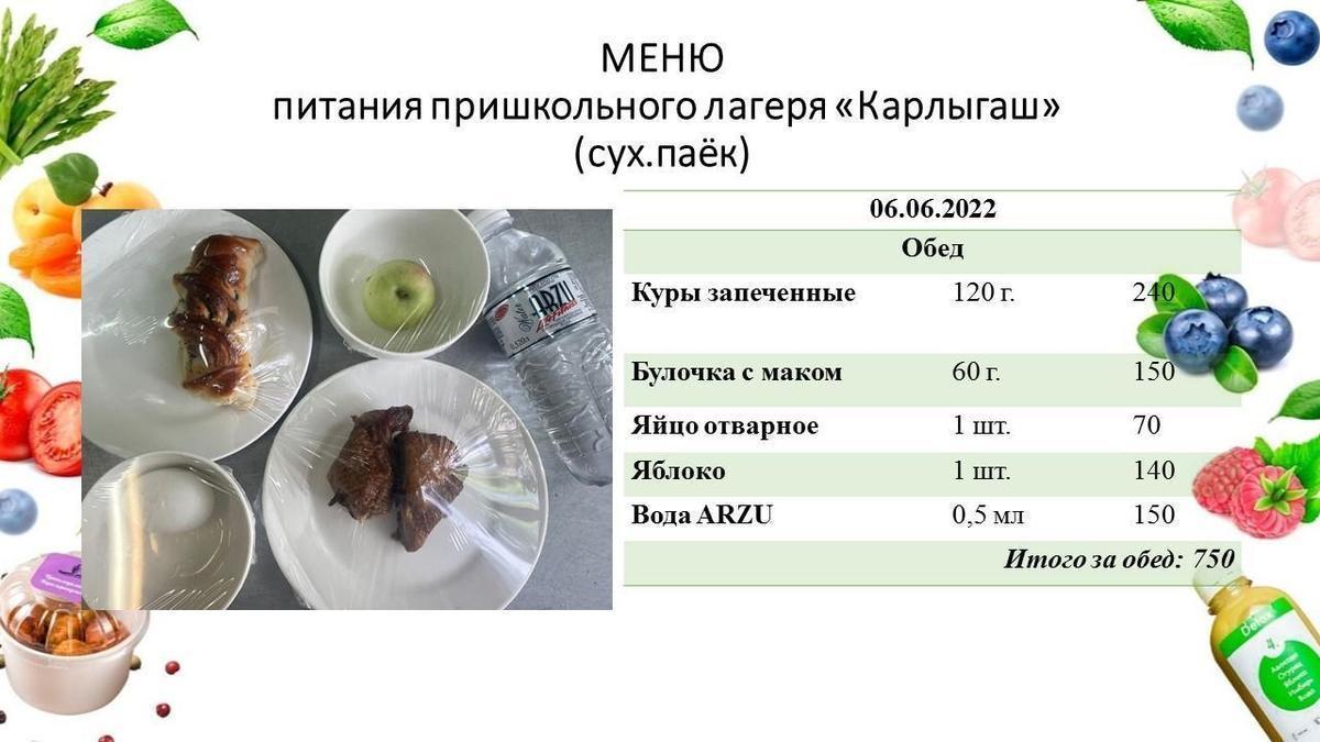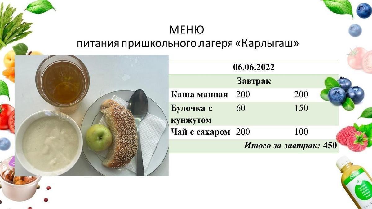 » Меню пришкольного лагеря "Карлыгаш" 06.06.2022