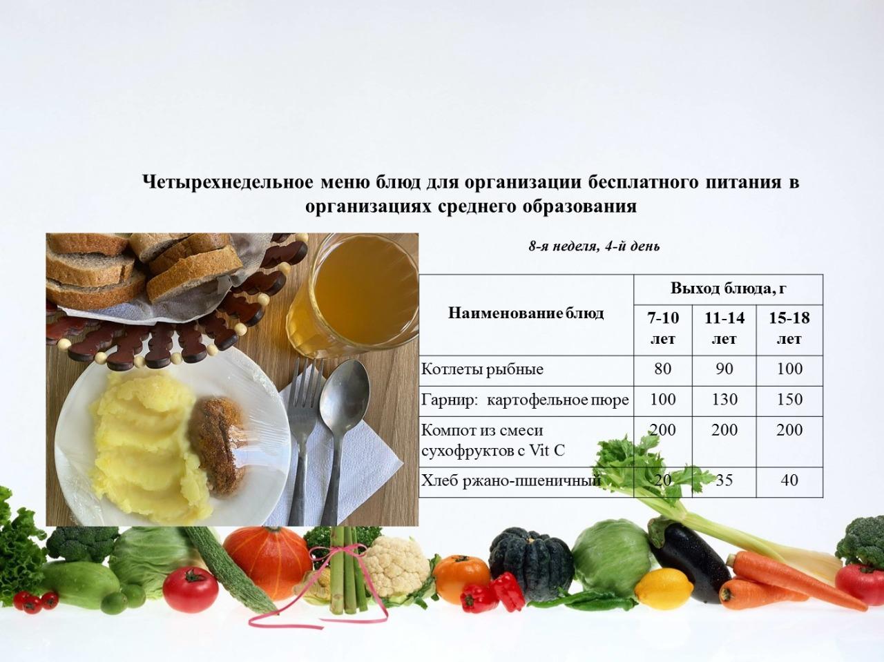 4 қазанға арналған ас мәзірі/Контрольное блюдо на 4 октября