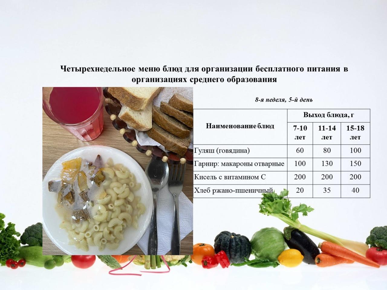 5 қазанға арналған ас мәзірі/Контрольное блюдо на 5 октября