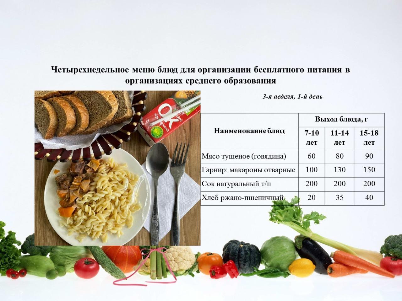 21 қарашаға арналған ас мәзірі/Контрольное блюдо на 21 ноября
