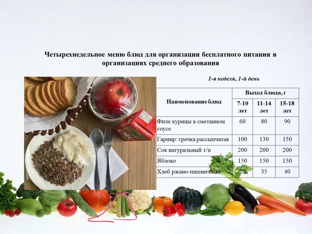 27 қыркүйекке арналған ас мәзірі/Контрольное блюдо на 27 сентября