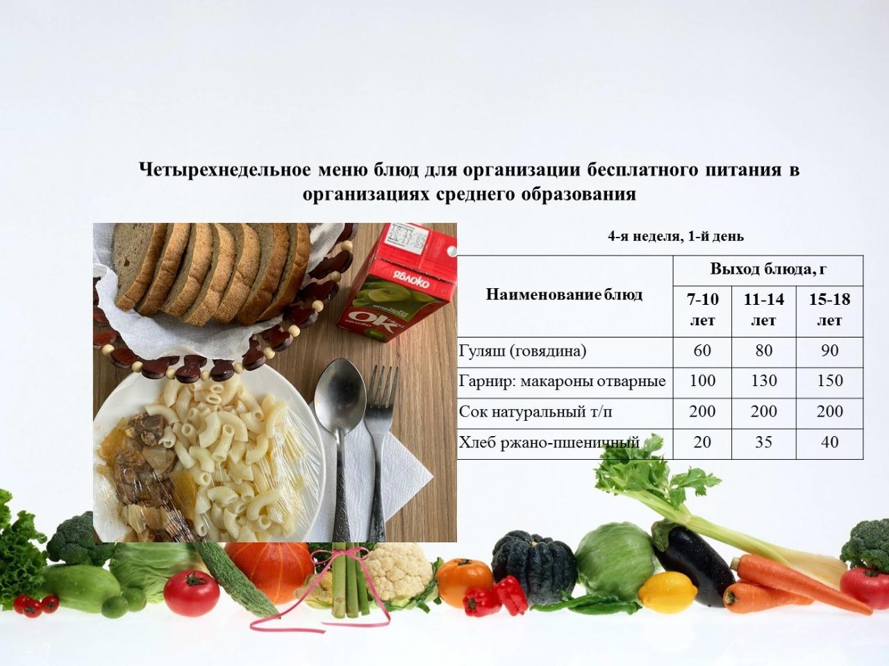 7 желтоқсанға арналған ас мәзірі/Контрольное блюдо на 7 декабря