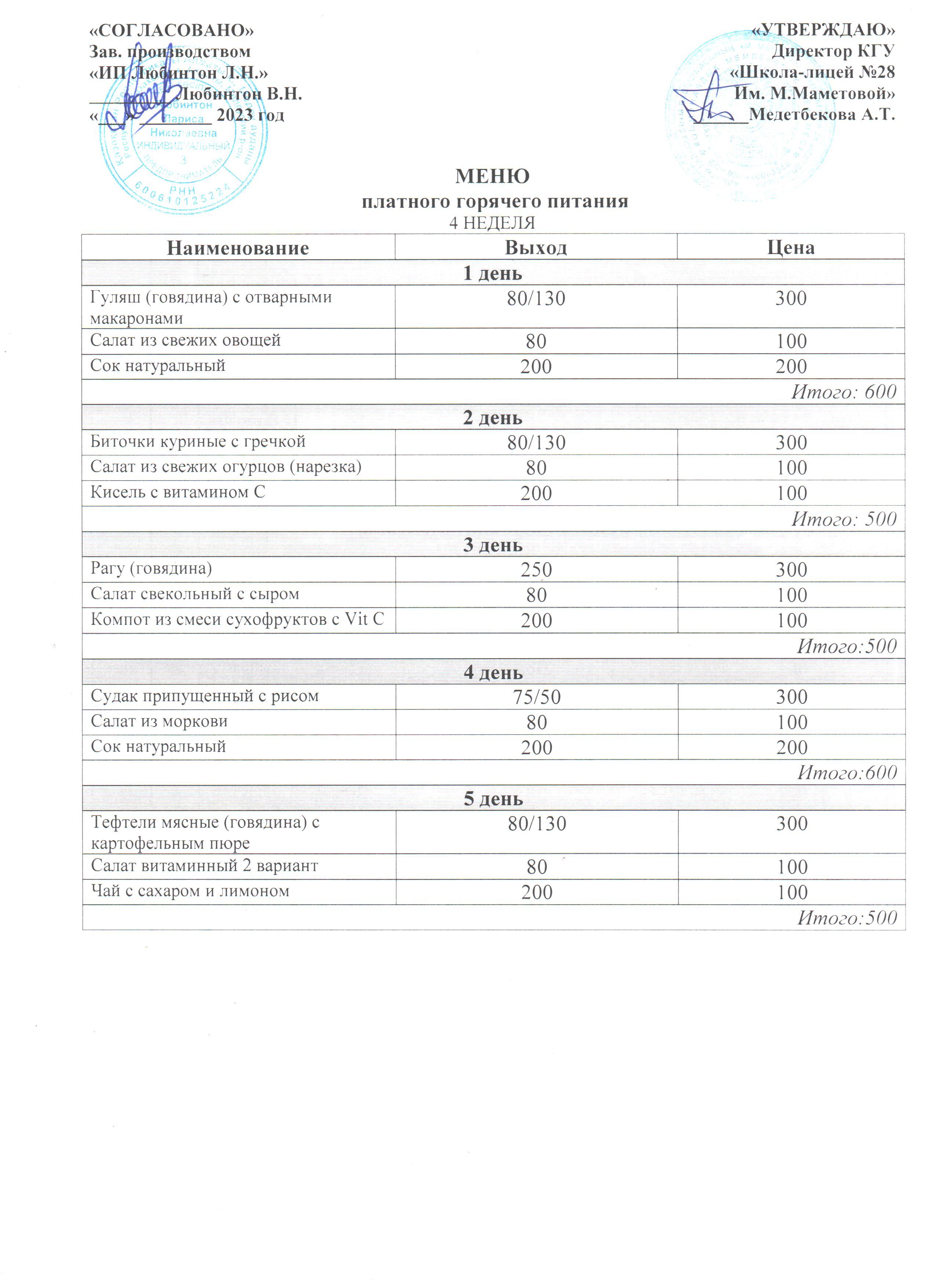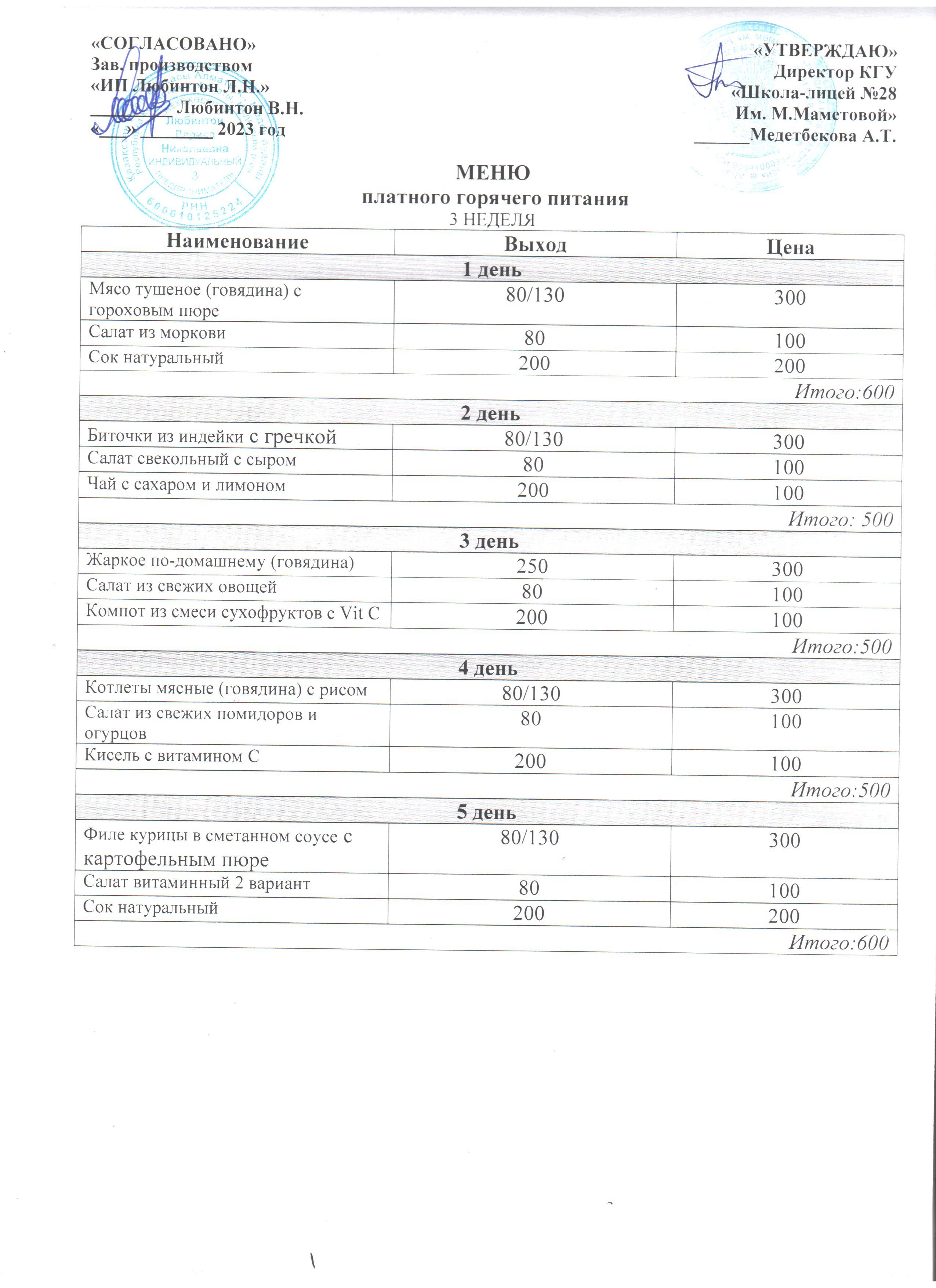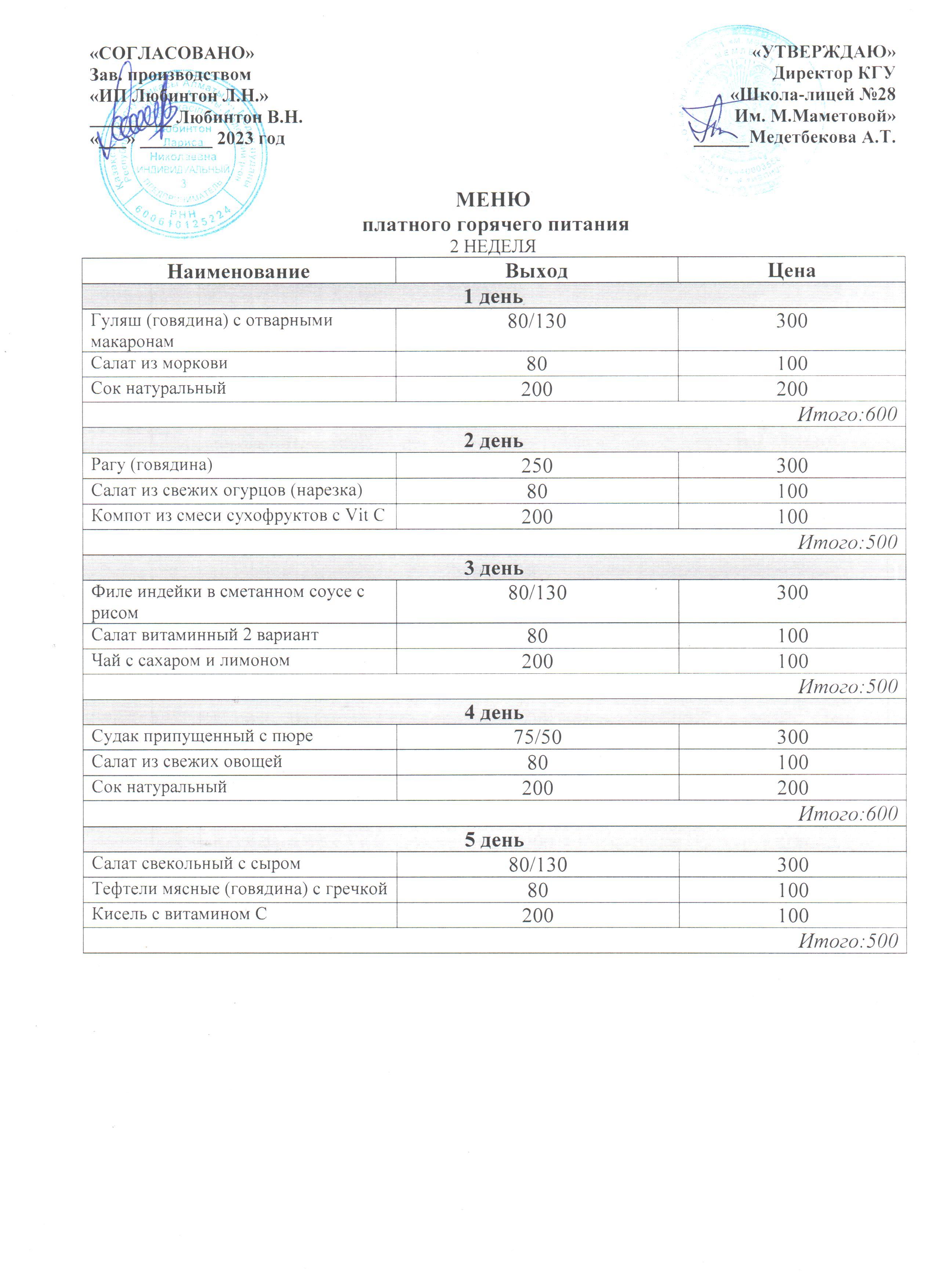 09 қаңтар 2023 0 1 2 3 4 5 2022-2023 оқу жылына ақылы ыстық тамақ мәзірі \ Меню платного горячего питания на 2022-2023 уч.год