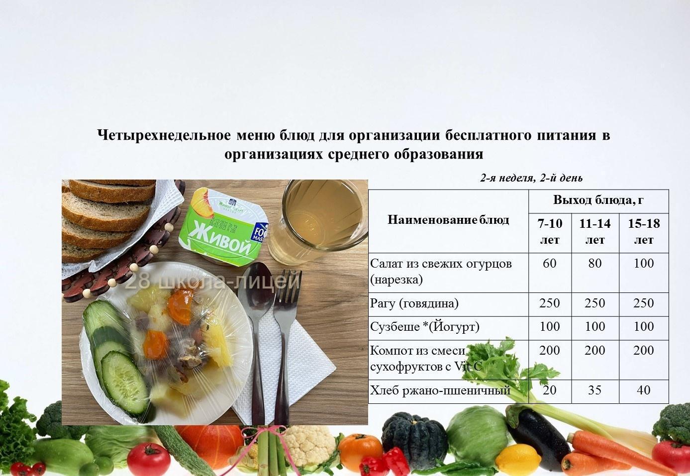 2 наурызға арналған ас мәзірі/Контрольное блюдо на 2 марта