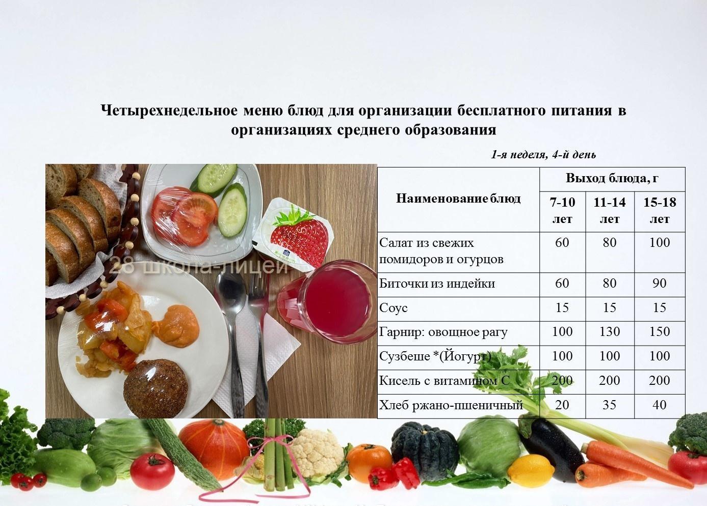 4 мамырға арналған ас мәзірі/Контрольное блюдо на 4 мая