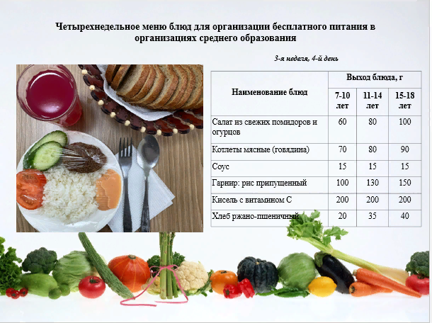 7 желтоқсанға арналған ас мәзірі/Контрольное блюдо на 7 декабря