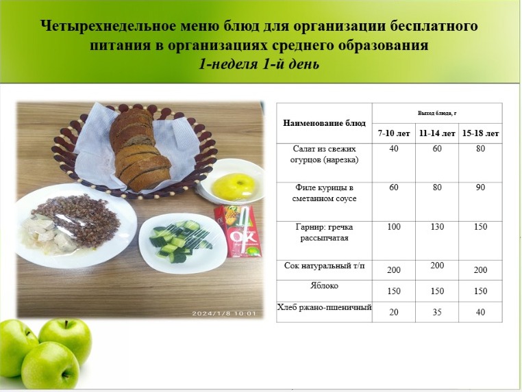 24 қаңтарға арналған ас мәзірі/Контрольное блюдо на 24 января