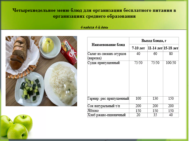 29- қыркүйекке арналған ас мәзірі/Контрольное блюдо на 29 сентября