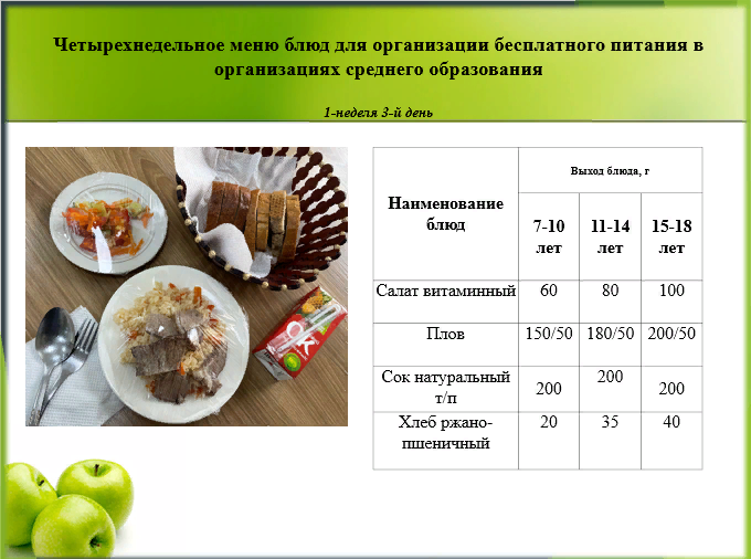 3-сәуірге арналған ас мәзірі /Контрольное блюдо на 3 апреля