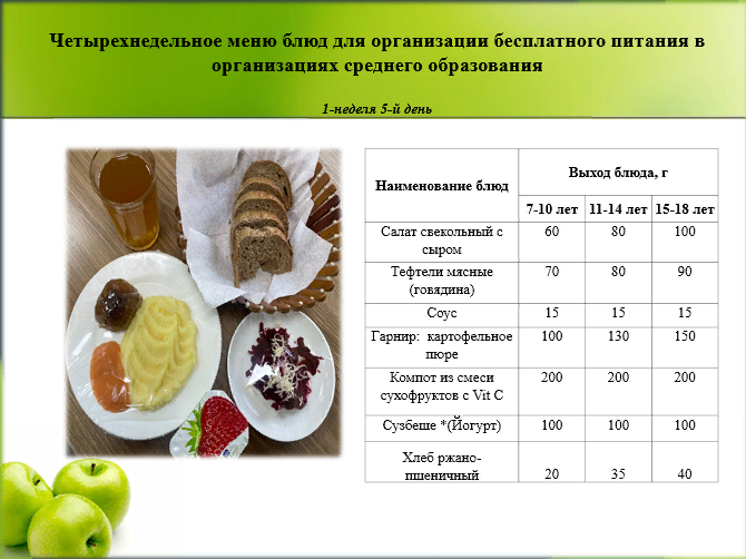5-сәуірге арналған ас мәзірі /Контрольное блюдо на 5 апреля