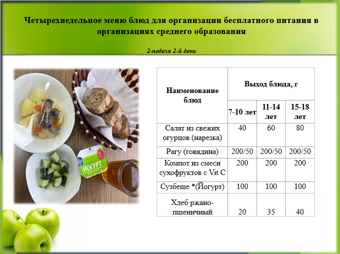 2-сәуірге арналған ас мәзірі /Контрольное блюдо на 2 апреля