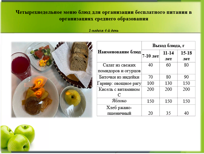 29- қыркүйекке арналған ас мәзірі/Контрольное блюдо на 29 сентября
