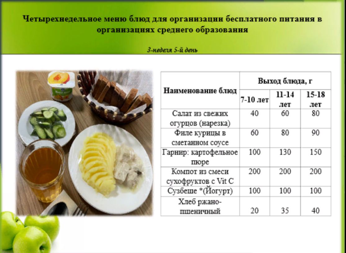 17 - мамырға арналған ас мәзірі /Контрольное блюдо на 17 мая