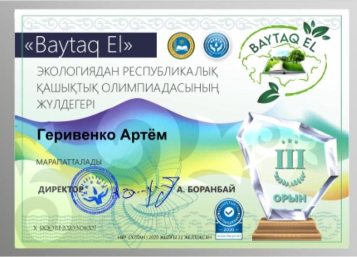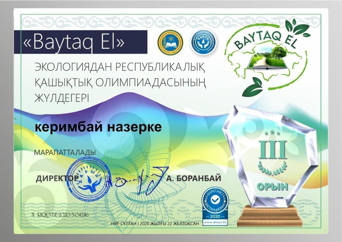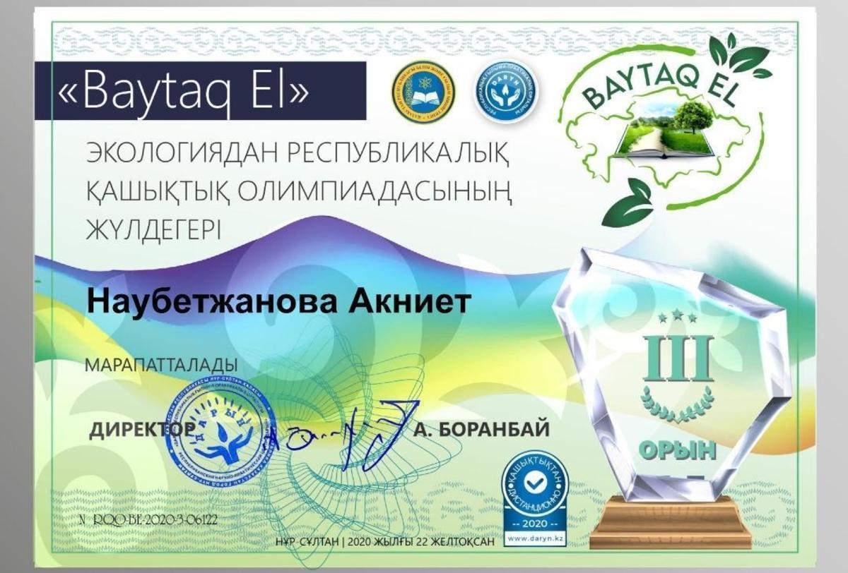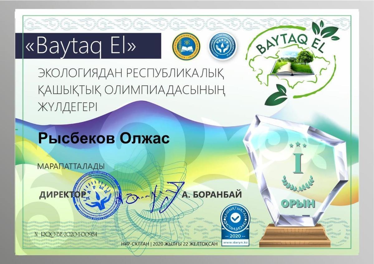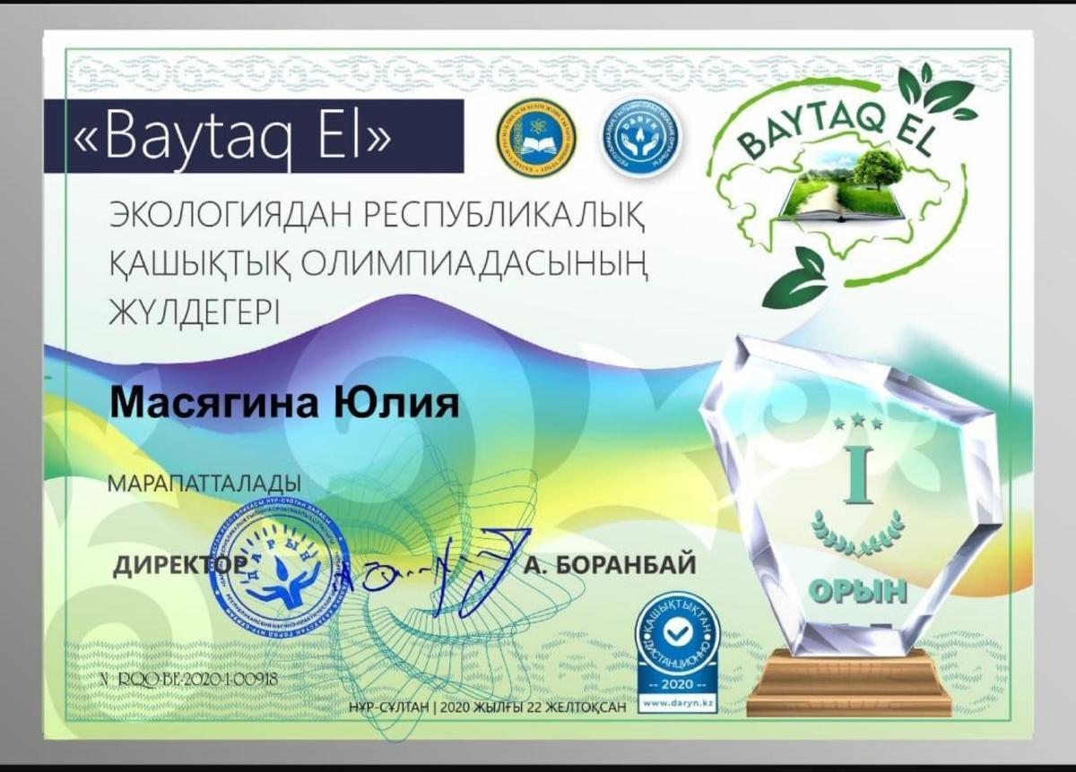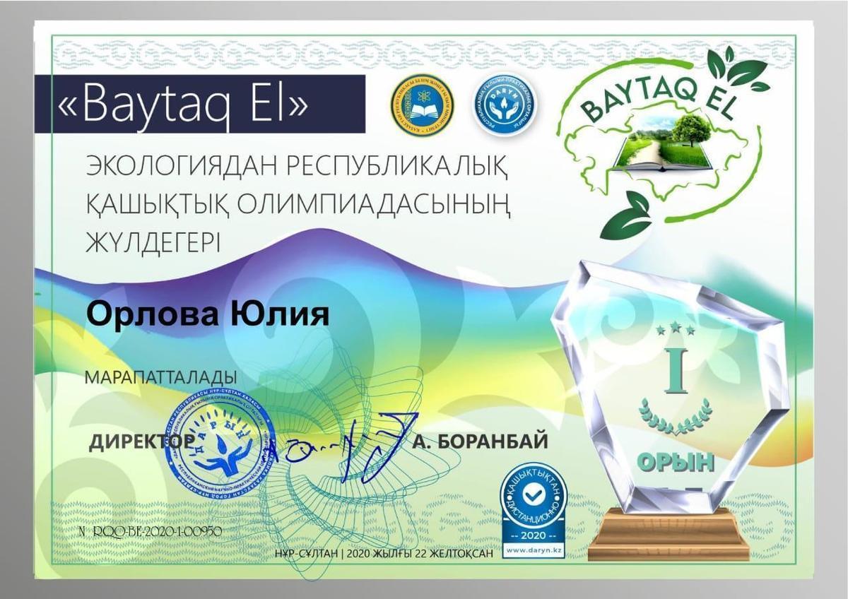 22 декабря проведена Республиканская дистанционная олимпиада по экологии «Baytaq El» для учащихся 9 – 11 классов. Основная цель Олимпиады – повышение экологической грамотности учащихся, расширение представления обучающихся о современных процессах в сфере экологии, стимулирование мотивации познавательных интересов школьников об улучшении состояния среды обитания, живой природы, здоровья. Изучение основ экологии становится необходимым условием обеспечения безопасности жизни и повышения ее качества для каждого современного человека. 30 учащихся КГУ «Школы-лицея №28 им.М.Маметовой» Медеуского района, г.Алматы приняли участие в олимпиаде по экологии «Baytaq El» и завоевали 28 призовых мест.