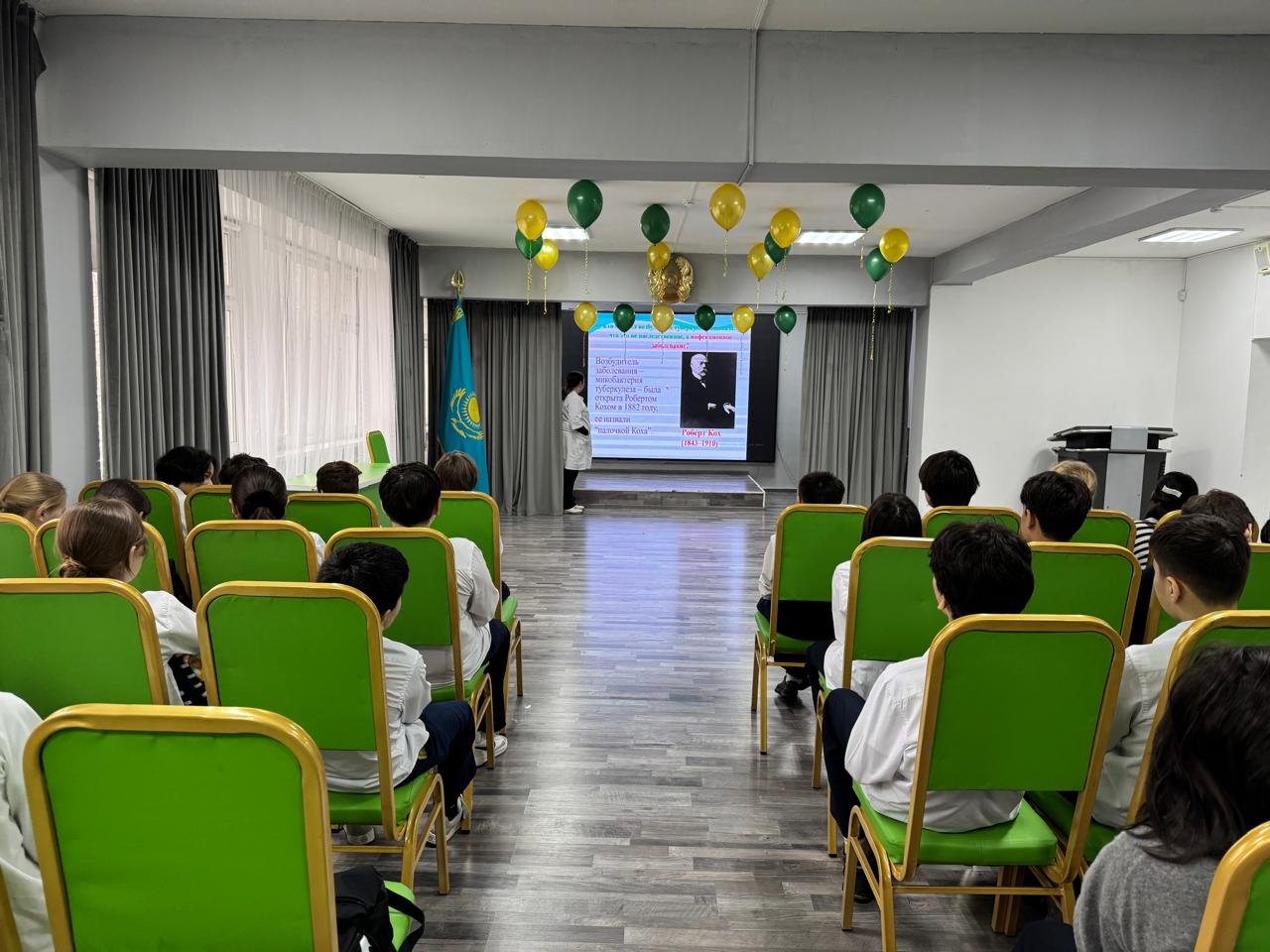 Әңгіме барысында №1 қалалық емхананың медбикесі Бейітута́нова Айнұр Нұрбапақызы оқушыларға туберкулездің белгілері, алдын алу шаралары және аурудың таралуын болдырмау үшін сақталуы тиіс ережелер туралы айтты.